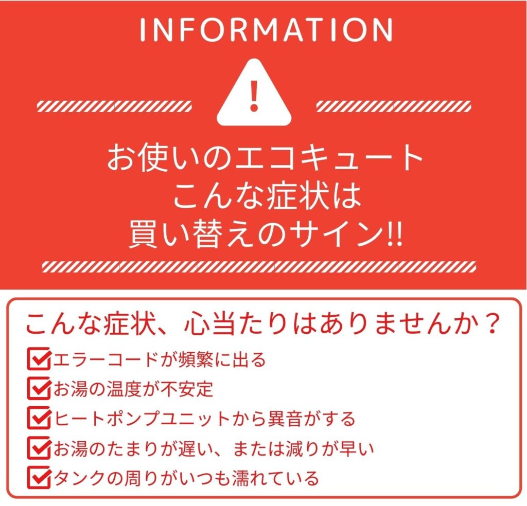 今シーズンの厳しい冬を耐えてきたご自宅のエコキュート。 以下のような症状は出ていませんか?これらは「限界のサイン」です。